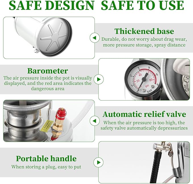 - 【SECURITY VALVE】- The barometer on this sprayer can intuitively see the state of pressure inside the tank. Come with a security valve that makes it automatically release internal pressure when the pressure is too high, keeping the pressure in a secure range