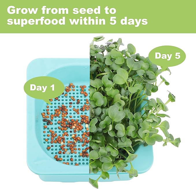 - 【Easy to Clean】Made from food-grade PP material, our mircogreen tray is BPA-free, safe, non-toxic, and odorless, ensuring long-lasting durability. The bottom tray is dishwasher safe for easy cleaning (Note: Please do not place the humidity domes in the dishwasher