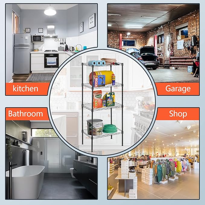 - ✔【MULTIFUNCTIONAL】: This wire shelf is for a wide range of applications. There are 4 PP Sheets attached to the shelf, which can place some small objects without worrying about falling from the mesh. You can use this shelves for storage in a variety of places, such as the bathroom kitchen garage.Tools, books,household appliances and other things can be placed on this wire shelving unit.