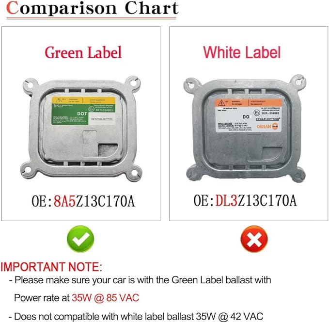 - Please verify your factory ballast and connectors matches the product on the image exactly before placing an order. Certain manufacturers may change the ballast type when there is a mid-cycle refresh or new production date.
