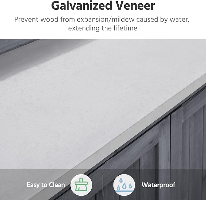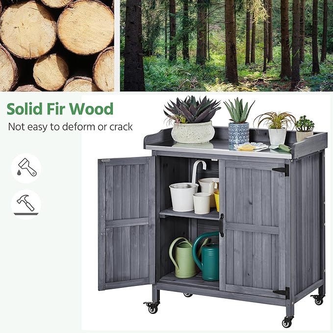 Yaheetech Garden Potting Bench Table, Outdoor Garden Horticultural Wooden Storage Cabinet & Solid Wood Planting Work Bench with Large Space Storage & Metal-Plated Tabletop, Gray