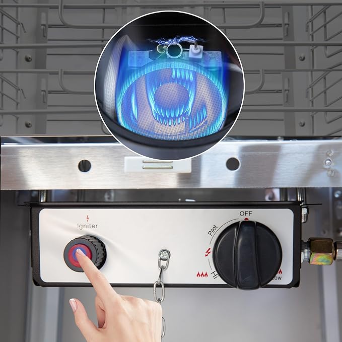 - 【HIGH HEAT OUTPUT】: The outdoor heater has 42,000 BTU of heat output and provides generous warmth to the surrounding area. Its heat coverage is up to 200 sq ft, you can enjoy cooking, entertaining guests, or relaxing outdoors with your family and friends in warm.