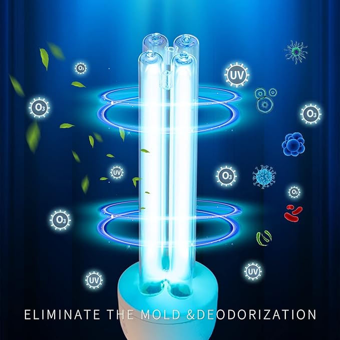- 【Ozone Bulb】UVC rays+Ozone, double powerful working. Ozone can reach any corner, covers up to 400 sq.ft.