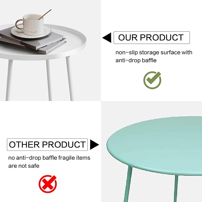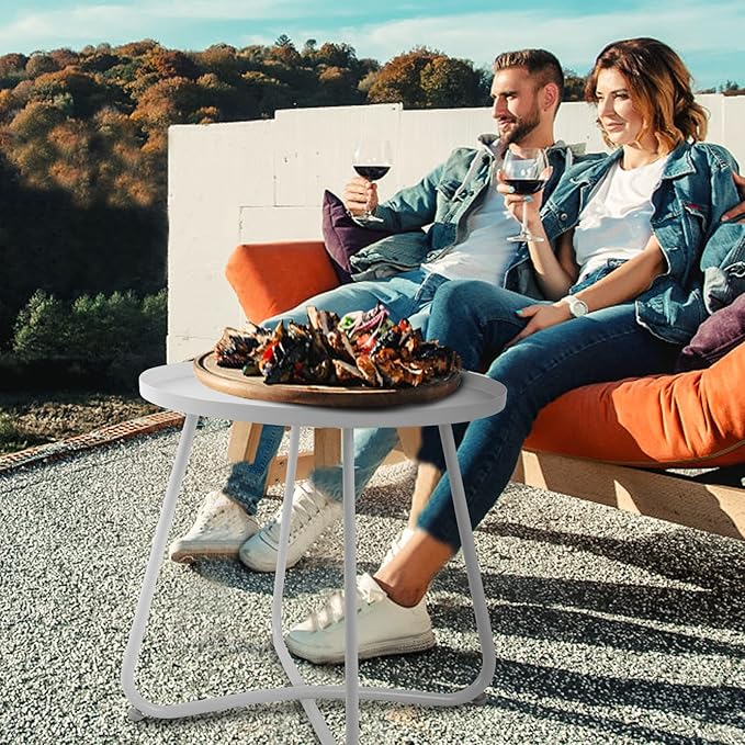 - 【Indoor & Outdoor Use】: This new version steel patio side table with unique edge curl design prevents items from falling out. Can be placed in your living room as a side table, sofa table, coffee table, phone table, the patio table weighs only 6 lbs, light and portable. You can use it indoors or outdoors as needed.