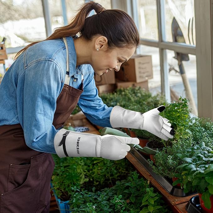 - Long sleeve: Elbow-length gauntlet will offer you the full protection for your forearms from your hands to elbow when you are trimming roses, pruning holly bushes, berry bushes and other prickly shrubs, tending to cactus plants