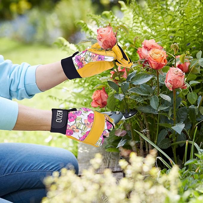 - Durable and Long-lasting: Gardening gloves are made of carefully selected grain cowhide to ensure abrasion resistance, which is not only thick but also soft and flexible with moderate oil resistance, puncture resistance and cut resistance. The back of the hand is made of elastic, breathable and sweat-absorbing material, which can keep our hands dry and easily complete all works in the garden.