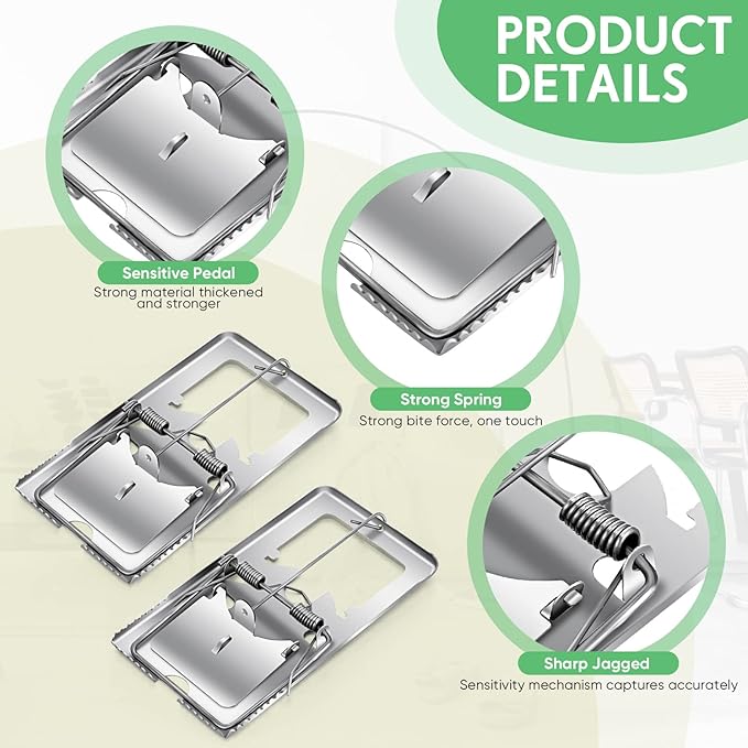 - Long Lasting Material: mice trap is made of galvanized metal material, which is strong, wear resistant, will not easy to break or deformation, reliable and not easy to rust, can be reused for a long time