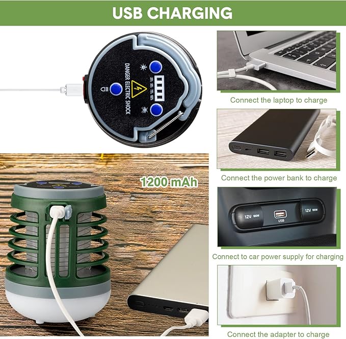 - Widely Applicable: the camping bug zapper can emit UV light to attract flies and kill them, which is an outdoor emergency flashing light as well as a good helper when you are camping; You can take it with you on camping trips, picnics, barbecues, fishing trips, hiking, climbing and sports, providing you a silence and safe environments