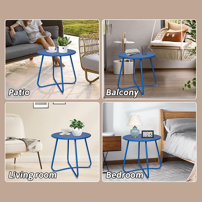 - WIDELY USE: Our metal side table not only can be used in gardens, patio, balcony, but also can be used in your bedrooms, living room, or on the corner of room and other small spaces. You can put your cups, vases or books on it and enjoy your afternoon tea time quietly.