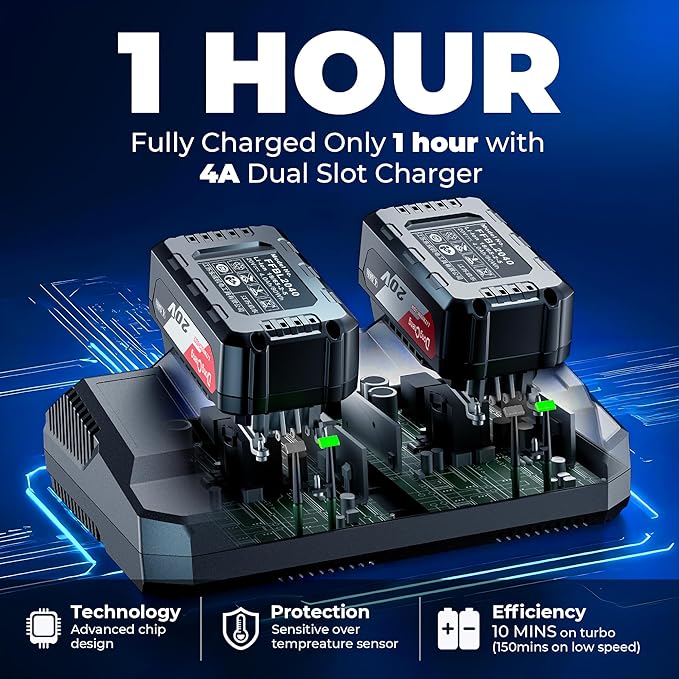 - 【Power All DongCheng 20V Tools】Powered by two 20V batteries that work together to provide 40V of power! This innovative design not only increases the performance of our leaf blower, but also allows for compatibility with other 20V electric tools in our product line. With our dual battery system, you can now seamlessly switch between tools.