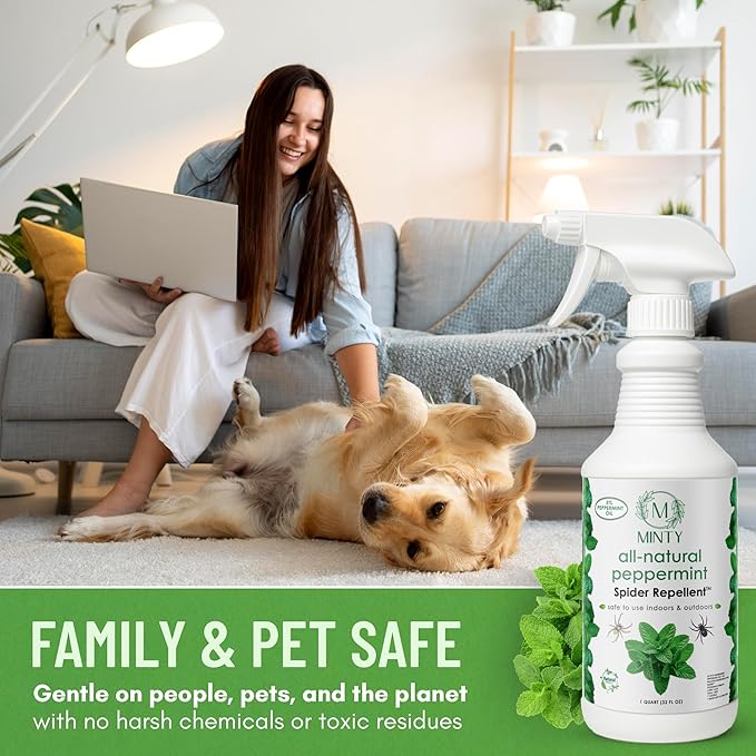 - Minty Spider Repellent with Natural & Powerful 5% Peppermint Oil, 128 fl oz