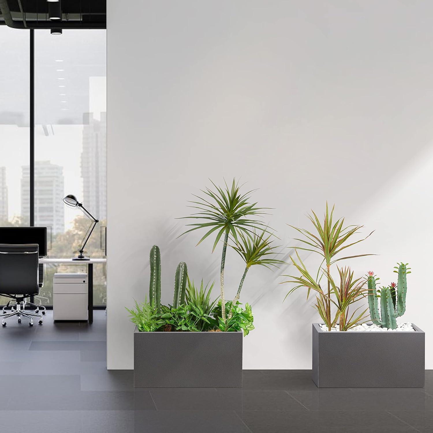 - NO ASSEMBLE AND SEAMLESS: Our flower box arrives fully assembled and requires no additional setup. Simply unpack and place it in your desired location for instant use, saving you time and effort. Crafted using advanced fully automatic welding technology, this flower box features a seamless, one-piece design with a smooth and even surface, ensuring long-lasting durability and a polished appearance.