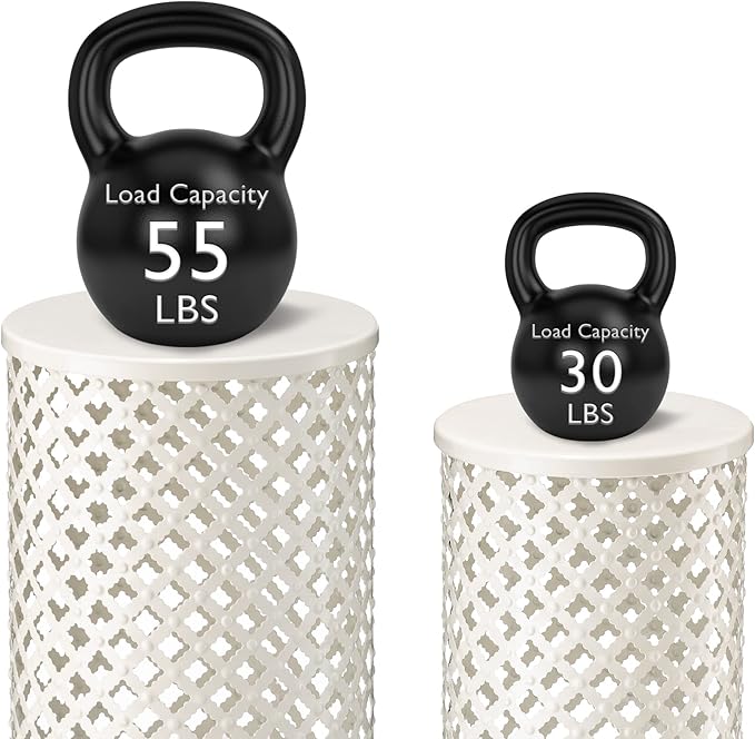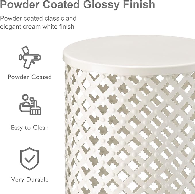- Vintage & Elegant: The garden stools features elegant power coated cream white finish, simple and warm, the unique metal laser exquisite grid cutout pattern give it classic and chic charm as well as an interesting light and shadow effect, blend in nicely in any modern, retro and rustic decor.
