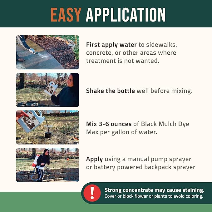 - COUNTRY CLUB QUALITY: Used on golf courses and country clubs around the US, our mulch dye brings that professionally manicured landscape feeling to your yard. The rich brown color makes your mulch look brand new, year-round!