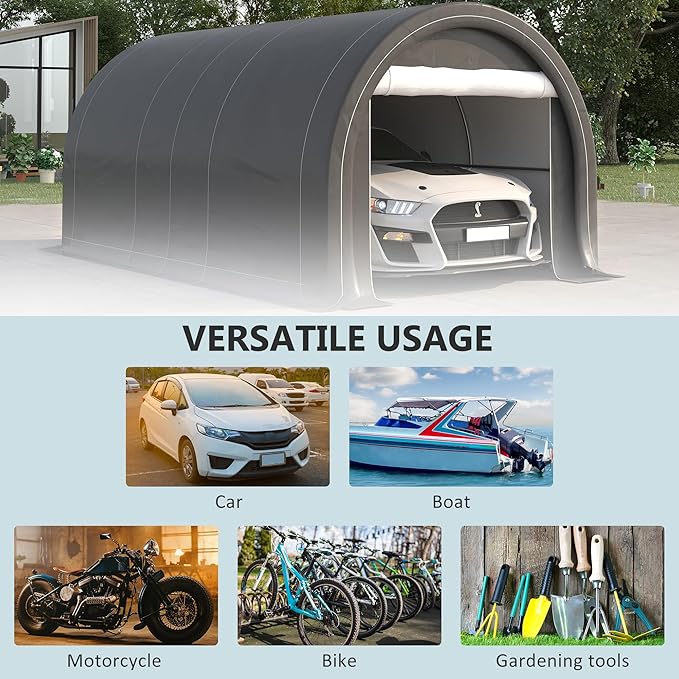 Outsunny 10' x 16' Carport, Heavy Duty Portable Garage Storage Tent with Large Zippered Door, Anti-UV PE Canopy Cover for Car, Truck, Boat, Motorcycle, Bike, Garden Tools, Outdoor Work, Gray