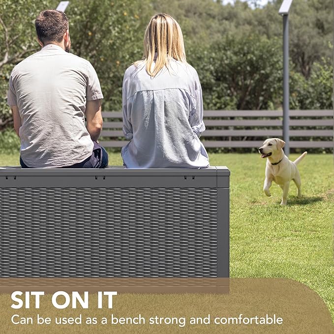 - -Extra Bench Seating: This storage box provides two comfortable seatings( weight capacity of 500 lbs), which can be used as a bench in your home. With two side handles, you can easily to move arround.