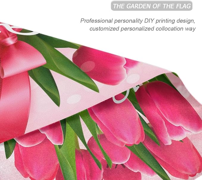 Kcldeci Happy Mother's Day Hoiliday Welcome Garden Flag 12x18 Inch Red Tulips for Mom Yard Flags Large Vertical Double Sided House Flag Seasonal Outside Decor for Yard Farmhouse