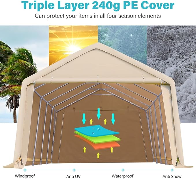 - 【Triple Layer 240g PE Cover】✔Beige cover is durable and made from triple layer 240 PE material ripstop that is UV-treated to resist fading, waterproof,anti-UV, windproof, rainproof, dustproof, and anti-snow, etc.