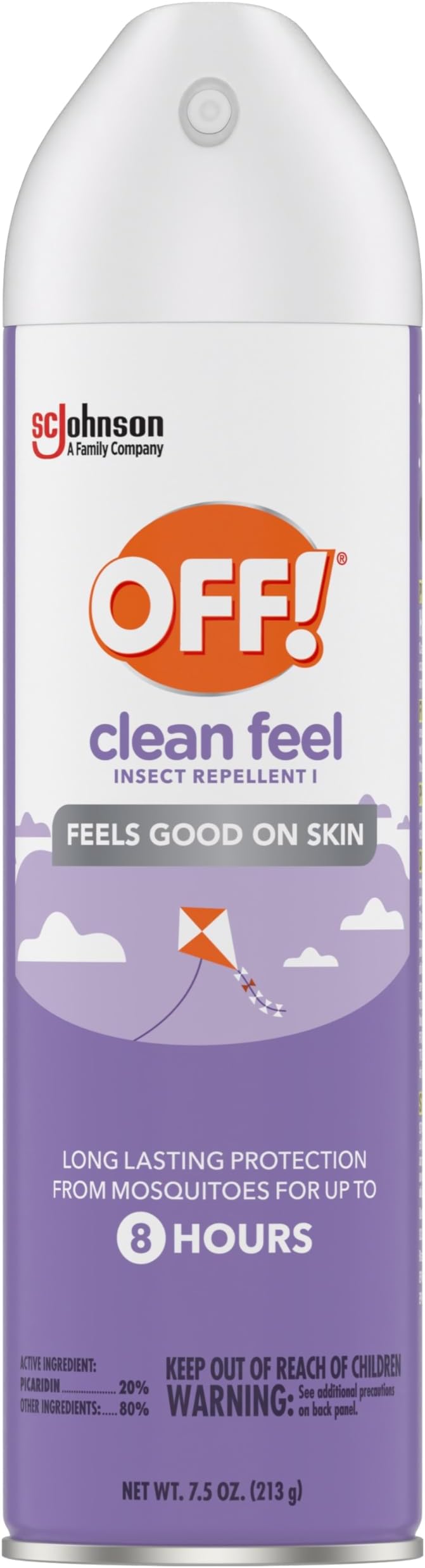 OFF! Clean Feel Insect Repellent Aerosol with 20% Picaridin, Bug Spray with Long Lasting Protection from Mosquitoes, Feels Good on Skin, 7.5 oz
