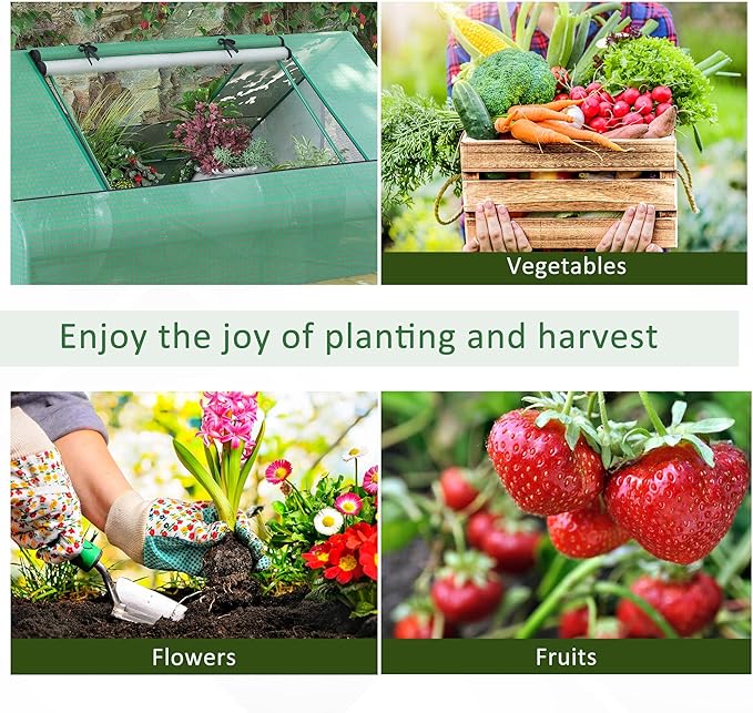 - Roll-Up Doors & Windows: You can open the two zippered roll-up doors to manage your plants easily, and the two mesh windows of the small greenhouse for outdoors provide better air circulation. They can also work as observation windows to observe the growth of plants inside your portable greenhouse.