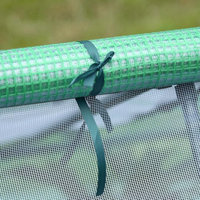 - Pe Cover: This hothouse's two-layer 140 GSM PE cover features a reinforcement grid through the middle to prevent tearing. It maintains high humidity levels and protects plants from UV scorching while allowing 85% of nourishing sunlight to pass through uninterrupted. You can use the 4" extended stakes and bury them in the ground to tighten the cover for more stability against the wind.