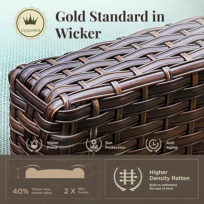 - 【ALL WEATHER WICKER KINGTM】Made of high-quality, weather-resistant PE rattan, ensuring they remain in pristine condition even after exposure to rain, moisture, or intense sun exposure. Anti soiling, easy to maitain, UV resistant. Perfectly for year-round outdoor use. The single chair could support up to 300 lbs weight and the 3-seater sofa supports 900 lbs