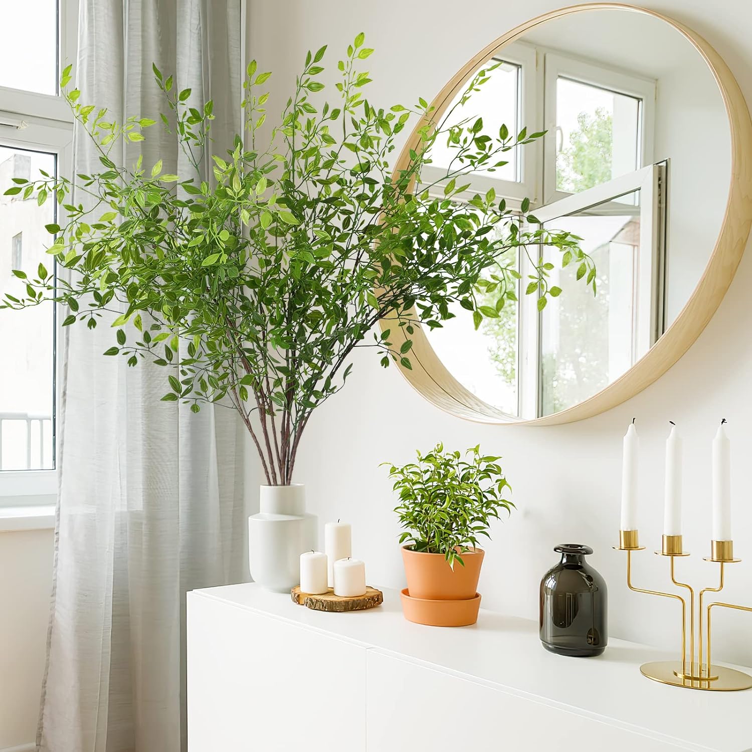 - 🌿Wide Usage🌿: Artificial Stems and branches are perfect to used for daily home, office, hotel, wedding decoration, show a different scene for you. Verisimilitude faux bamboo plant add green richness to your life. Do not need water, sunshine and fertilizer; will never wither and fall; feel the breath of spring around the year.