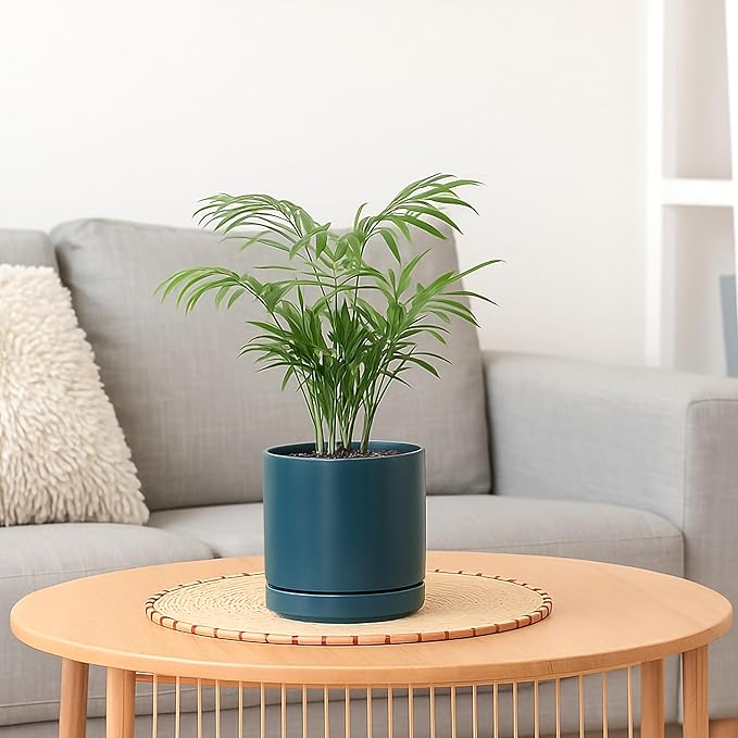 D'vine Dev 4.7 Inch & 6.5 Inch Ceramic Planter Pots for Plants with Drainage Hole and Saucer, Small Plant Pots Set, Teal, 94-G-S-9
