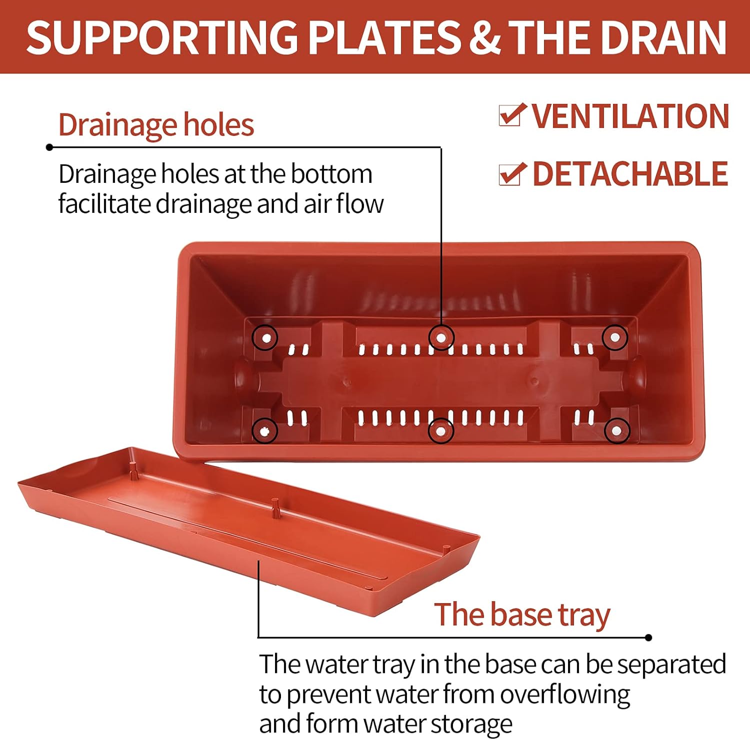 Window Box Planter, 12 Pack Plastic Vegetable Flower Planters Boxes 17 Inches Rectangular Flower Pots with Saucers for Indoor Outdoor Garden, Patio, Home Decor (Brick red)