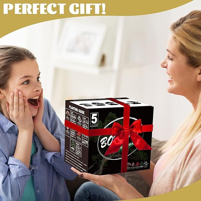 - DECENT DIY GIFT: There is a complete growing kit (5 plastic pots, 4 soil discs, 5 plant markers, 1 bonsai pruner, 1 water bottle and 1 manual booklet) for a beginner to start planting. With a beautiful box, the bonsai tree kit is an ideal gift presenting to your parents or friends as birthdays, anniversaries and holidays gift.