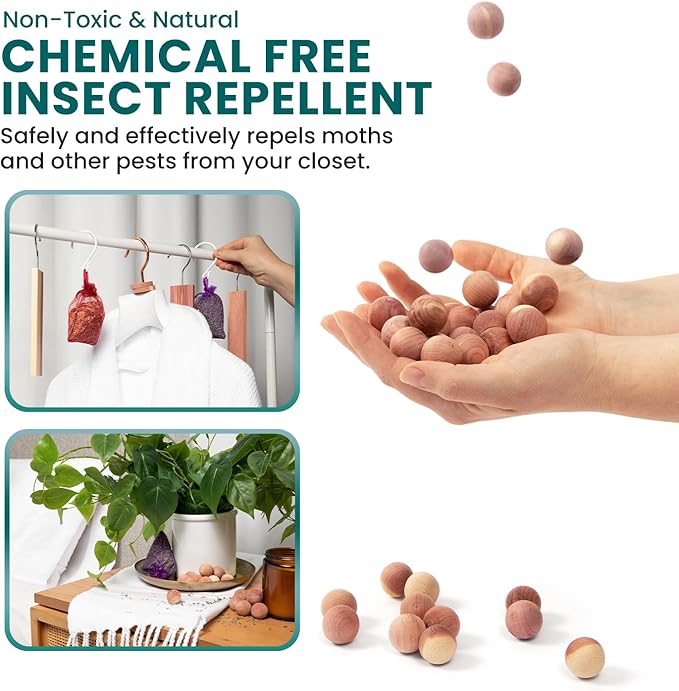 - Keep your clothes smelling fresh with our cedar balls for clothes storage, which release a pleasant forest scent that will help you avoid using harmful chemicals for closet protection.