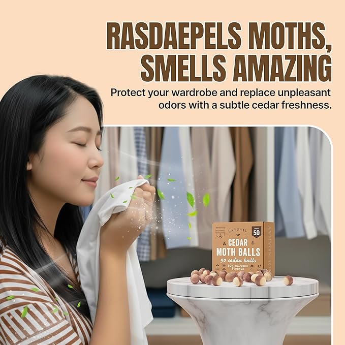 50 Cedar Balls for Clothes - Fresh Smell for Closets and Drawers - Protection for Garments - Cedarwood Closet Freshener & Protects from Moths - Wood Block for Drawer & Storage