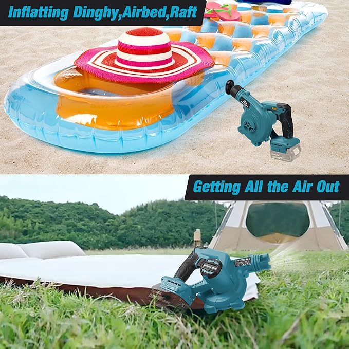 - 【2-in-1 Blower & Vacuum】 2 in 1 design makes electric leaf blower & vacuum can be switched at will, just enjoy the flexibility and versatility of this cordless leaf blower. It’s not only a leaf sweeper, but also a multifunctional dust & pet hair cleaner, car blower, inflator for camping,boating or floating,also awesome for getting all the air out.