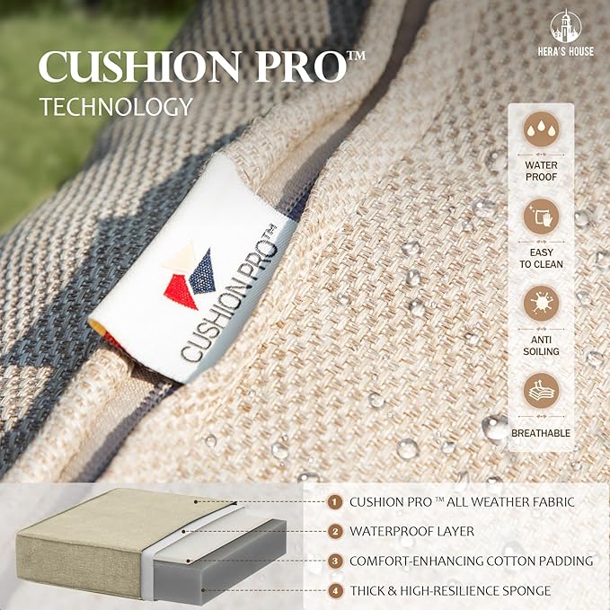 - 【E-COATING & POWDER-COATING TECHNIQUE】ALL the HERA'S HOUSE metal frame of conversation sets are processed by high-performance E-COATING and POWDER-COATING technique which provides extended protection against rust, scratches, rain, and UV harm. All weather resistant, anti-rust, easy to clean, no special care needed.