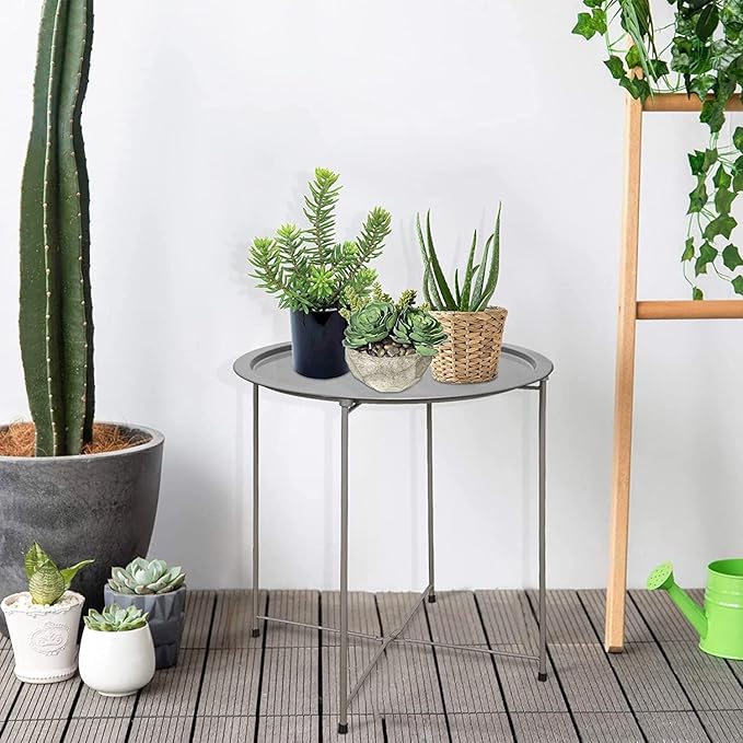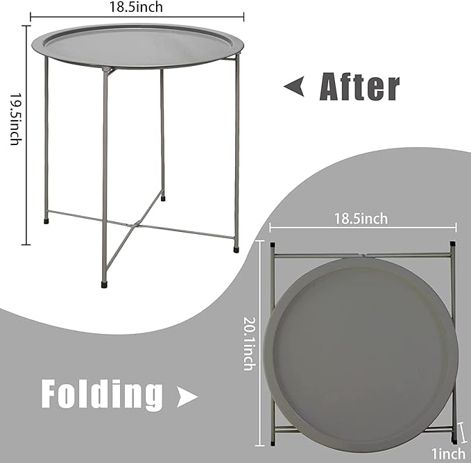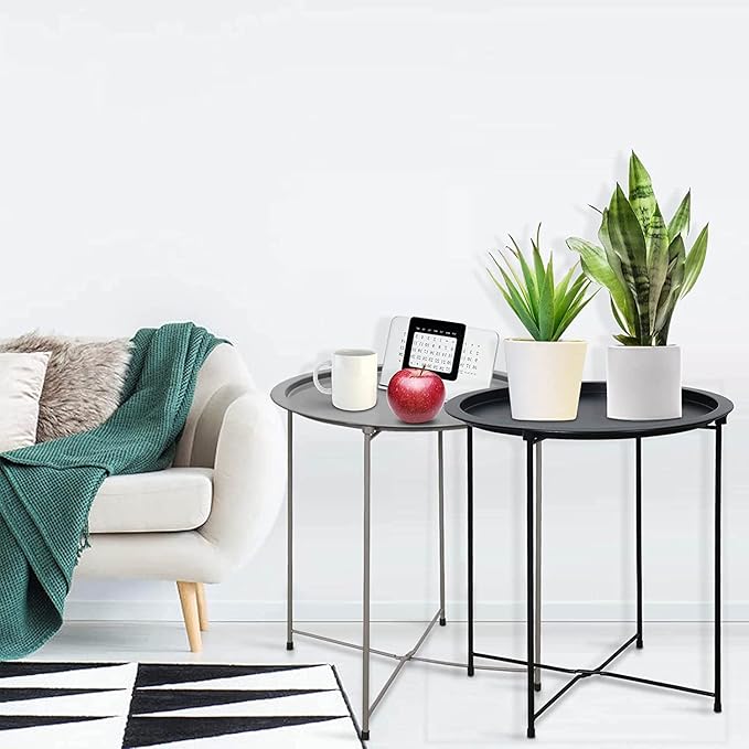Garden 4 you Folding Tray Metal Side Table 2PC Grey Round End Table Cyan Sofa Small Accent Fold-able Table, Round End Table Tray, Next to Sofa Table, Snack Table for Living Room and Bed Room