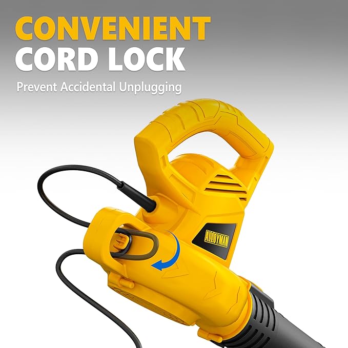- 【NOTE】Our corded leaf blower has a two-prong plug and requires an extension cord to start, But the extension cord is not included in the product.
