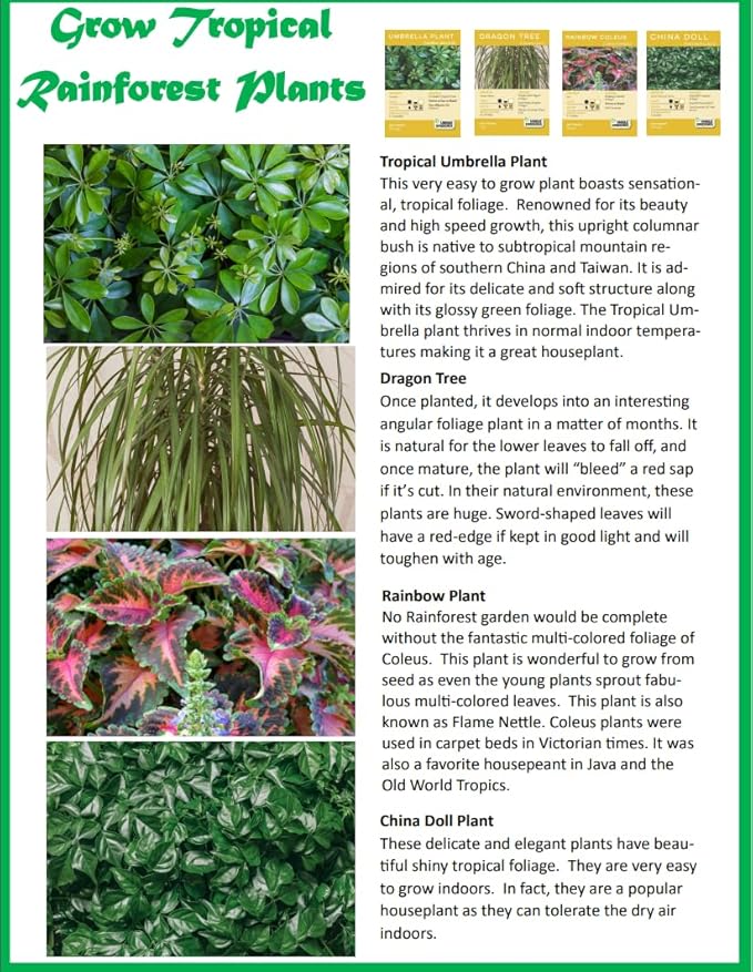 - Grow a Variety of Stunning Tropical Plants: This comprehensive terrarium kit lets you grow Umbrella, Dragon, China Doll trees, Rainbow Plants. As the plant grows, the glass terrarium accentuates any decor while nurturing plant life with minimal environmental impact.