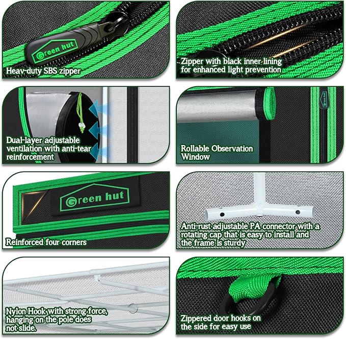 - LIGHT PROOF --- The large heavy duty Zippers & 1.5" ribbon protect the tent from light leaking and ensure durability and long-lasting use. Let you control the climate and lighting so you can grow any plant in any place safely and easily
