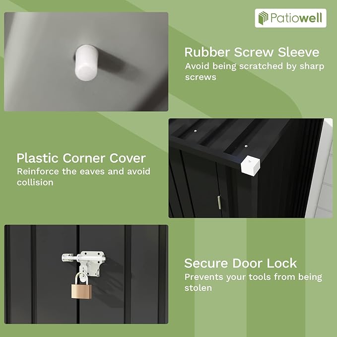 - Easy Installation: All accessories of this storage shed are numbered. You can install them step by step according to the instructions or installation video. If there are 2-3 people working at the same time, the installation will be very easy. We recommend that you wear gloves during the installation process and tighten all screws after the installation is completed. If you have any questions, please feel free to contact us, and our professional team will reply to you within 24 hours.