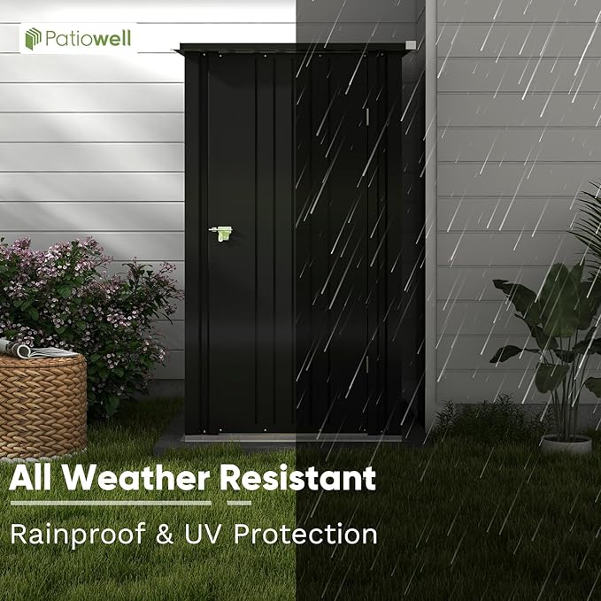 Patiowell 3 x 3 FT Outdoor Storage Shed,Small Garden Tool Storage Shed with Sloping Roof and Single Lockable Door, Outdoor Shed for Backyard Garden Patio Lawn, Black