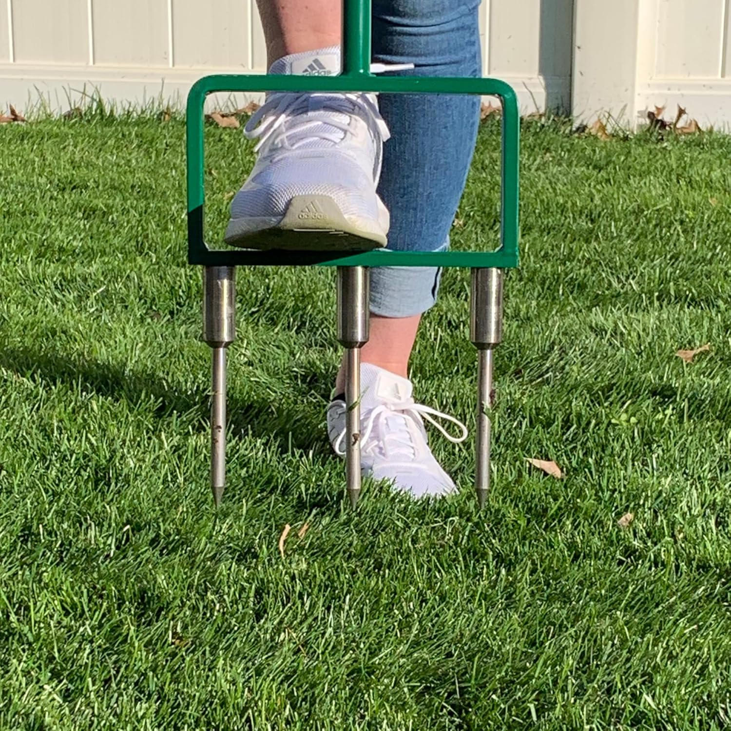 - HAVE THE LAWN OF YOUR DREAMS: Revitalize your lawn this season by using the Landzie Fork Lawn Plug Aerator to remove compacted soil and thatch and promote healthy grass growth throughout. Aerator coring your lawn encourages healthy root growth, enhances resistance to drought and flooding, and reduces the need for excessive amounts of fertilizer. USE your Landzie Soil Aerator with the Landzie Spreader (B07ZQSV81S) and the Landzie Lawn Level (B095KSKXPQ) for a lush and level lawn this season.