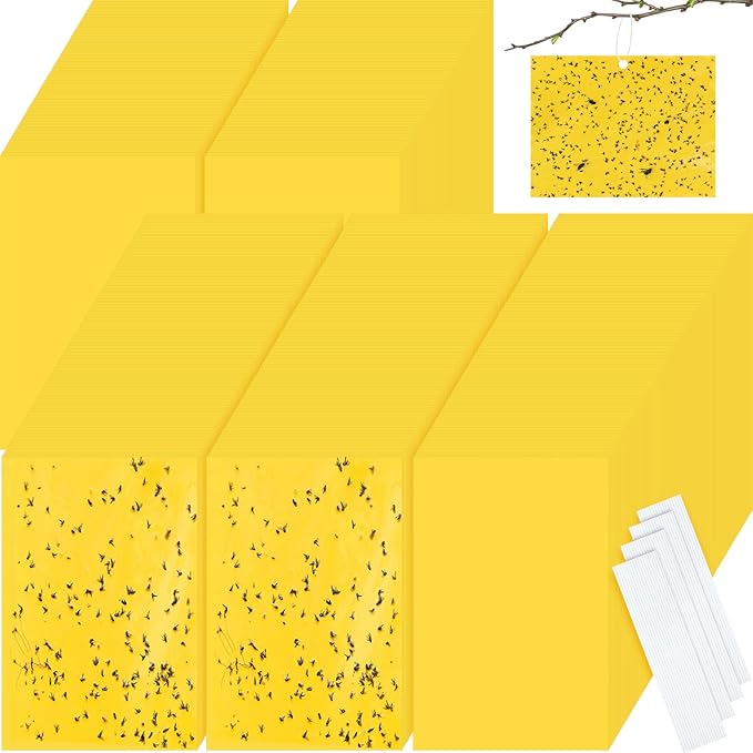 - Double Sided Stickiness: our yellow sticky traps are designed to be double sided, widely capture the most pests, includes white flies, leaf miners, fungus gnats, shore flies, midges, mosquitoes, and other flying insects, you can place them in the garden, lawn, yard, next to the trash can and so on