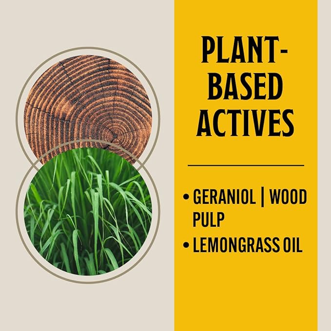 - Plant-Based Actives: Essential oils Geraniol and Lemongrass work together to kill insects fast, proven effective for generations