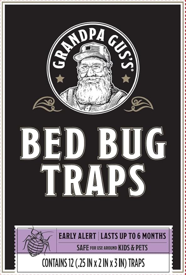 Grandpa Gus's Bed Bug Glue Traps for Home & Travel, Early Detection, Lasts up to 6 Months, Small & Discreet Patented Crush-Proof Design (Pack of 12)