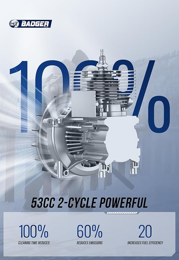 - POWERFUL ENGINE β The 53cc 2-cycle engine is high-performance and built-in, delivering 1.9kW and 6700 RPM idling, making it strong enough to handle even the toughest wet leaves and debris.