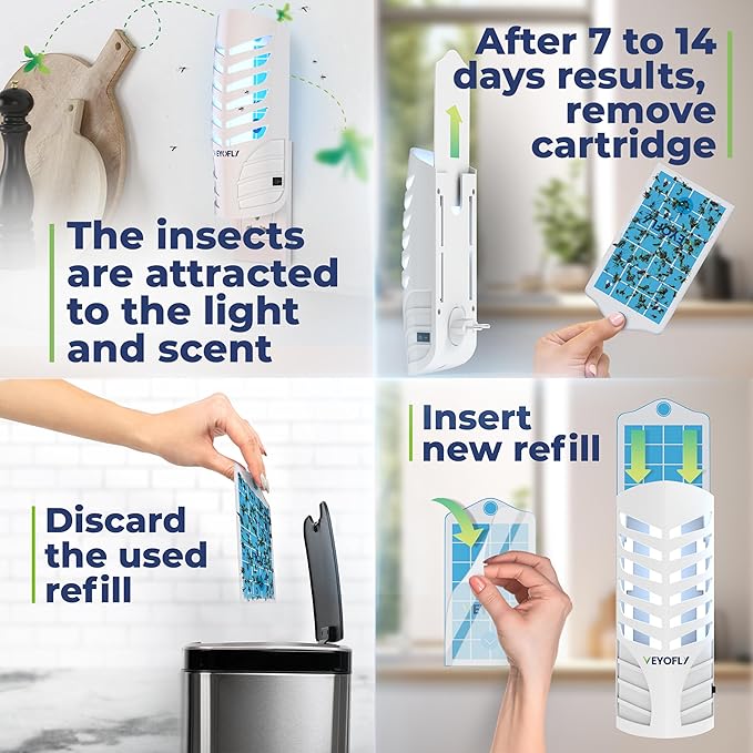 - SAFE AND NON-TOXIC INSECT CONTROL: This fruit fly trap works without mosquito attractants, insect repellents, or active insecticides, making it safe for children and pets. The adhesive cards are also odorless for a pleasant indoor environment.