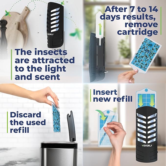 - SAFE AND NON-TOXIC INSECT CONTROL: This fruit fly trap works without mosquito attractants, insect repellents, or active insecticides, making it safe for children and pets. The adhesive cards are also odorless for a pleasant indoor environment.
