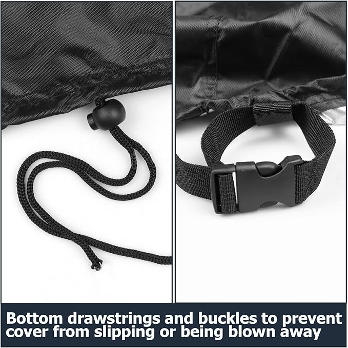 - STAY WELL ON YOUR GRILL β The adjustble straps with buckles and drawing string at the bottom can flexibly adjust the tightness of the cover so that it can sit and stay firmly over your outdoor table, preventing it from being blown away by the wind.