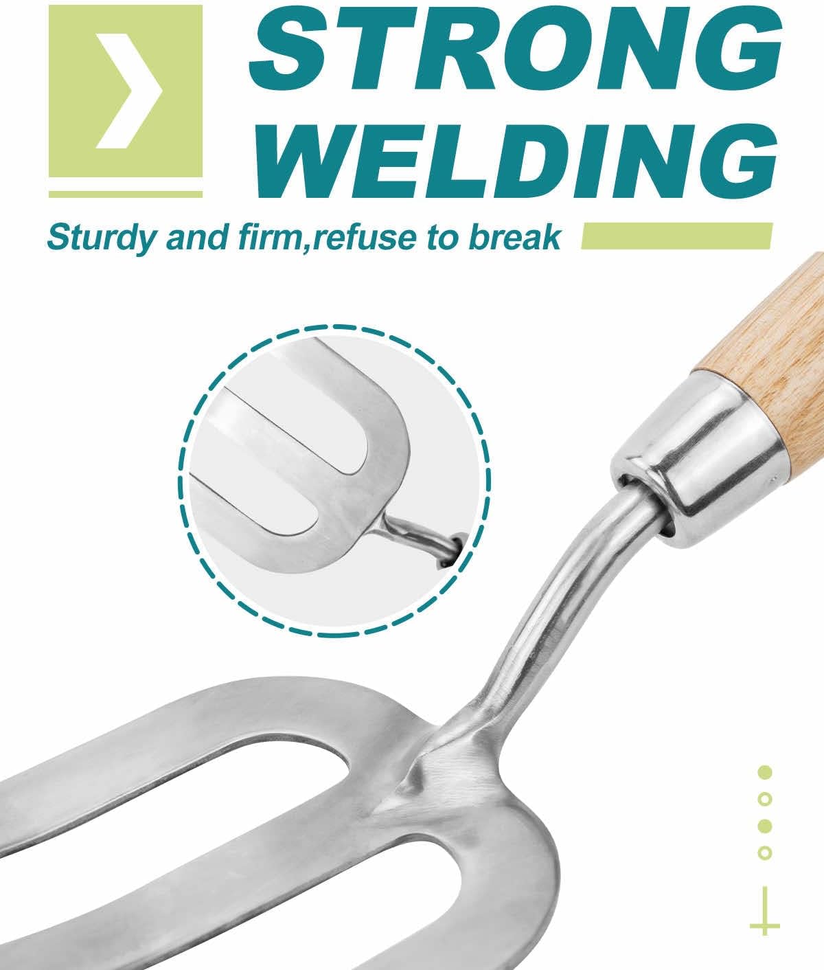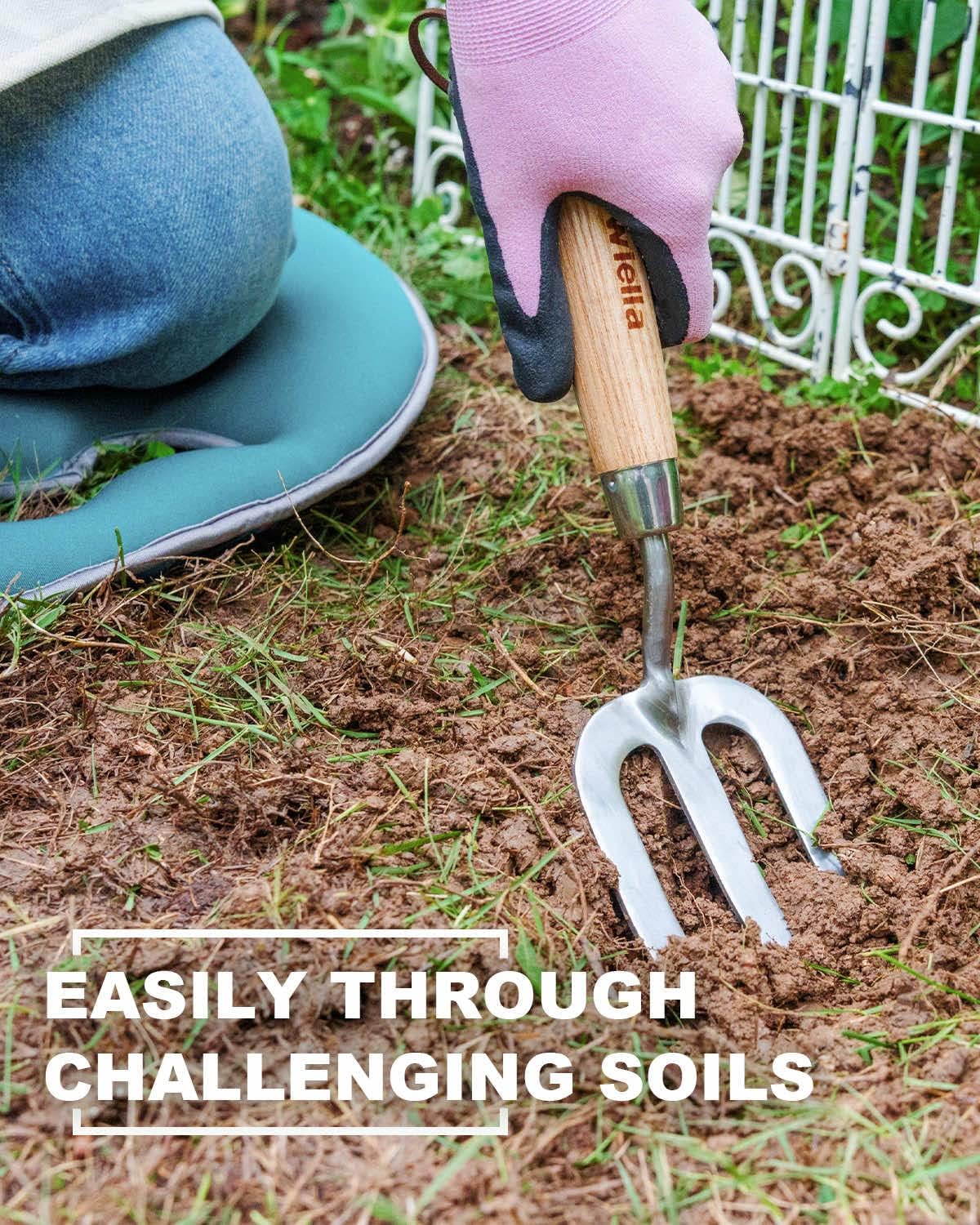 - UNRIVALED QUALITY - This hand fork is hand-forged from stainless steel and fitted with ash hardwood handle for long lasting sharpness and durability. Short, compact, it can be easily stored in any tool bag, shed or garage.