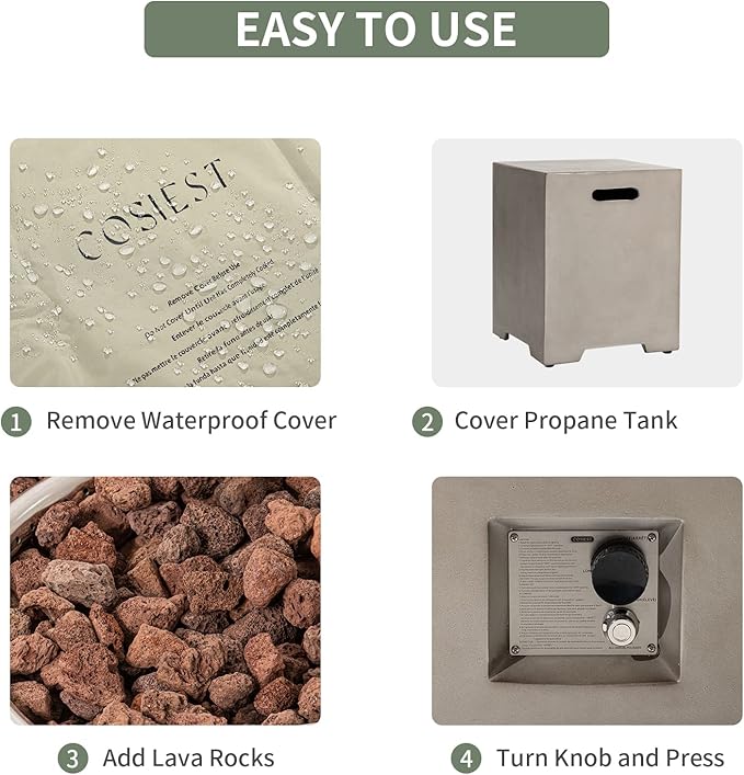 - 🔥 【 Perfect Hideaway】: We use clean-burning propane fire pits but still want to keep the unsightly take tucked away out of view. That's why COSIEST makes this beautiful and ingeniously simple tank cover. Not only is it beautiful and durable, made from the same fire-retardant magnesium oxide and steel as our firepits and tables, But It's also functional as a convenient side table that goes well with modern outdoor furniture decor with its simple clean lines.